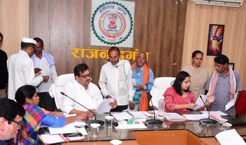 जनदर्शन में आज डोंगरगांव विकासखंड के ग्राम अर्जुनी निवासी श्री शिव कुमार धनकर अपने घर के पास लगे विद्युत पोल को स्थानांतरित करने के लिए आवेदन किया। राजनांदगांव विकासखंड के ग्राम सोमनी निवासी श्री पन्ना लाल पटेल ने अपनी घर से आस-पास शासकीय जमीन का सीमांकन कर अतिक्रमण को हटाने के लिए आवेदन किया। ग्राम डगनिया निवासी श्रीमती प्रमिला साहू ने आबादी जगह दिलाने के लिए आवेदन किया। छुरिया विकासखंड के ग्राम खोराटोला निवासी श्री चन्दूराम ने वन अधिकार पट्टा प्रदाय के लिए आवेदन किया। इसी तरह ग्राम तुर्रेगढ़ निवासी श्री सहदेव और श्री रिकेश्वर एवं ग्राम जनकपुर निवासी श्री रोमनलाल ने वन अधिकार पट्टा दिलाने के लिए आवेदन किया।