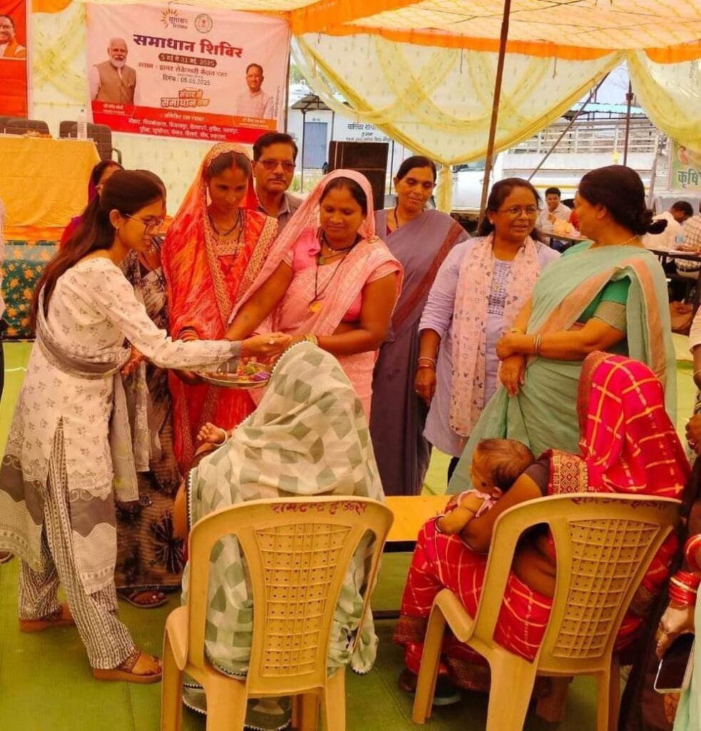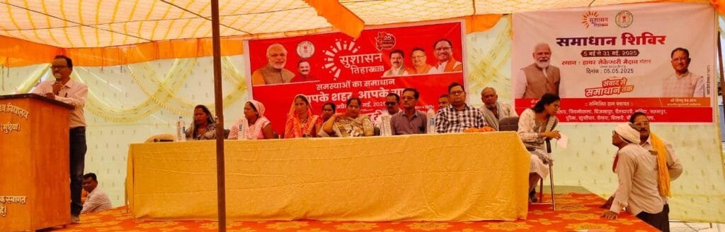 राजनांदगांव 05 मई 2025। सुशासन तिहार 2025 अंतर्गत आज जनपद पंचायत डोंगरगढ़ के ग्राम मोहारा में समाधान शिविर का आयोजन किया गया। शिविर में 12 ग्राम पंचायत मोहारा, सिवनीकला, बिजनापुर, चैतुखपरी, मुढिय़ा, सहसपुर, पुरैना, खुर्सीपार, सेम्हरा, बिल्हरी, खैरा, रूवातला से प्राप्त आवेदनों का निराकरण किया गया। शिविर में पंचायत एवं ग्रामीण विकास विभाग, कृषि विभाग, महिला एवं बाल विकास, राजस्व, मछली पालन, पशुधन विकास, लोक निर्माण, विद्युत विभाग, लोक स्वास्थ्य यांत्रिकी, स्वास्थ्य विभाग, परिवहन विभाग, पुलिस विभाग, शिक्षा विभाग, आबकारी विभाग, जिला सहकारी, वन विभाग, श्रम विभाग, खाद्य विभाग सहित अन्य विभागों द्वारा शत-प्रतिशत प्राप्त आवेदनों के निराकरण की जानकारी दी गई। विभागीय अधिकारियों ने निराकरणों का वाचन किया।