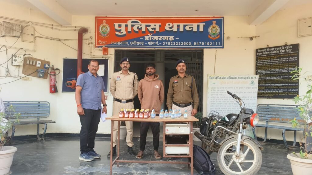 थाना प्रभारी डोंगरगढ़ निरीक्षक संतोष जायसवाल के नेतृत्व में पुलिस टीम द्वारा मुखबिर से प्राप्त सूचना के आधार पर दिनांक 01 फरवरी 2026 को लेडिजॉब पुलिया के पास रेड कार्रवाई की गई। कार्रवाई के दौरान ग्राम भरीटोला निवासी पवन ठाकुर (24 वर्ष) को अवैध रूप से शराब परिवहन करते हुए पकड़ा गया।