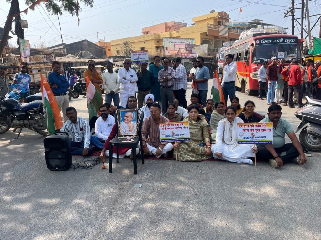 राजनांदगांव,डोंगरगढ़। आज डोंगरगढ़ शहर में राष्ट्रपिता महात्मा गांधी की पुण्यतिथि के अवसर पर गांधी चौक के पास स्थित महात्मा गांधी जी की प्रतिमा पर माल्यार्पण कर उन्हें श्रद्धांजलि अर्पित की गई। इस अवसर पर मनरेगा से महात्मा गांधी जी का नाम हटाने के विरोध में सांकेतिक चक्काजाम भी किया गया।