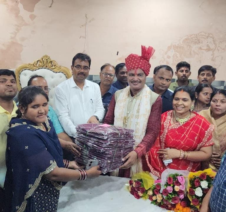 राजनांदगांव 23 अगस्त। नगर निगम द्वारा सफाई कर्मियों एवं स्वच्छता दीदीयो को समय समय पर वर्दी, साड़ी, रैन कोट के अलावा अन्य सुरक्षागत सामग्री का वितरण किया जाता है। इसी कडी में आज तीजा त्योहार के पूर्व महापौर श्री मधुसूदन यादव एवं आयुक्त श्री अतुल विश्वकर्मा ने निगम अध्यक्ष श्री टोपेन्द्र सिंह पारस वर्मा, नेता प्रतिपक्ष श्री संतोष पिल्ले के अलावा महापौर परिषद के प्रभारी सदस्यो व पार्षदों की उपस्थिति में नगर निगम के महिला सफाई कर्मियों तथा स्वच्छता दीदीयो को साड़ी का वितरण किया।