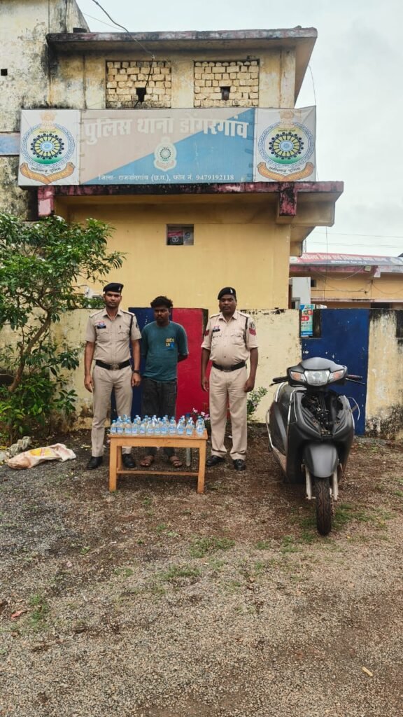राजनांदगांव। पुलिस अधीक्षक सुश्री अंकिता शर्मा (भा.पु.से.) के निर्देशन, अतिरिक्त पुलिस अधीक्षक श्री राहुल देव शर्मा एवं अनुविभागीय अधिकारी (पुलिस) डोंगरगांव श्री दिलीप सिसोदिया के मार्गदर्शन में डोंगरगांव पुलिस ने अवैध शराब परिवहन के खिलाफ सख्त कार्रवाई करते हुए एक आरोपी को गिरफ्तार किया है।