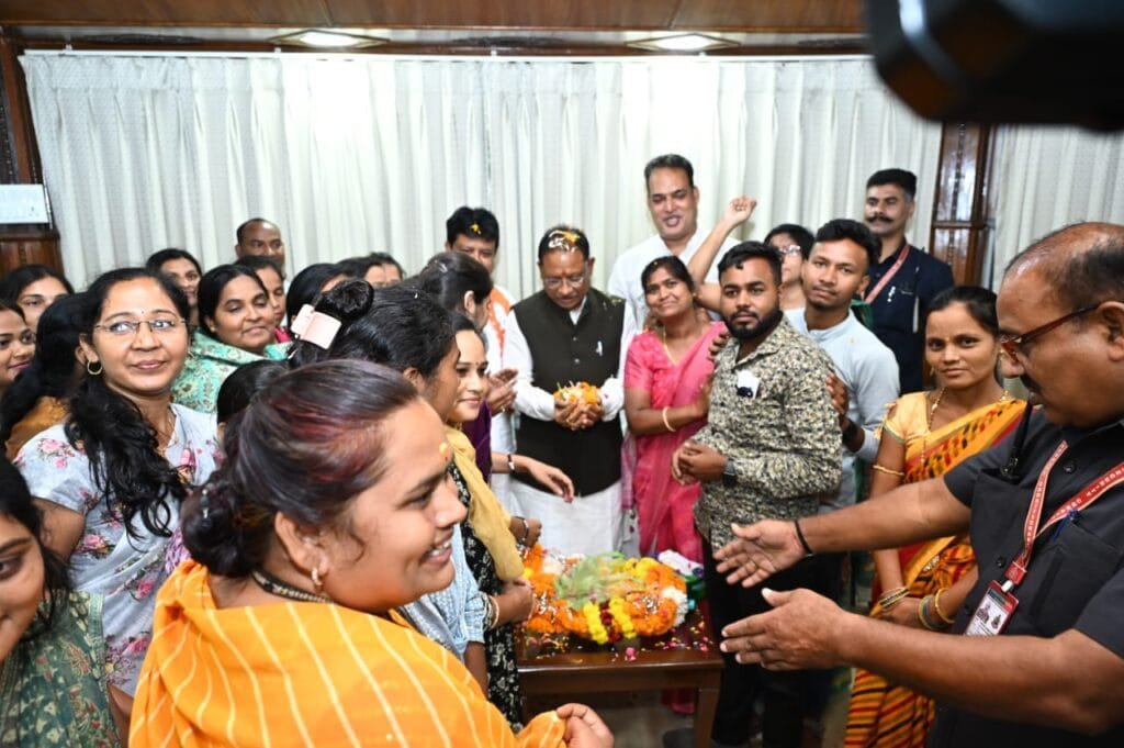 दिवंगत पंचायत शिक्षक प्प्रांताध्यक्ष श्रीमति माधुरी मृगे के अध्यक्षता में मुख्यमंत्री विष्णुदेव साय व छत्तीसगढ़ विधान सभा अध्यक्ष डॉ. रमन सिंह से मुलाकात कर पदाधिकारी और सदस्यों द्वारा आभार व्यक्त किया गया।तत् पश्चात प्रेस वार्ता में माधुरी मृगे ने बताया कि मुख्यमंत्री द्वारा पात्र लोगों के लिए अनुकंपा नियुक्ति का प्रथम पहल है तथा द्वितीय चरण में जल्द ही अपात्र लोगों को तृतीय व चतुर्थ श्रेणी में अनुकंपा नियुक्ति प्रदान की जाएगी। मुख्यमंत्री ने यह भी कहा कि अपात्र लोगों के लिए पहल करते हुए पंचायत विभाग को निर्देशित किया गया है।