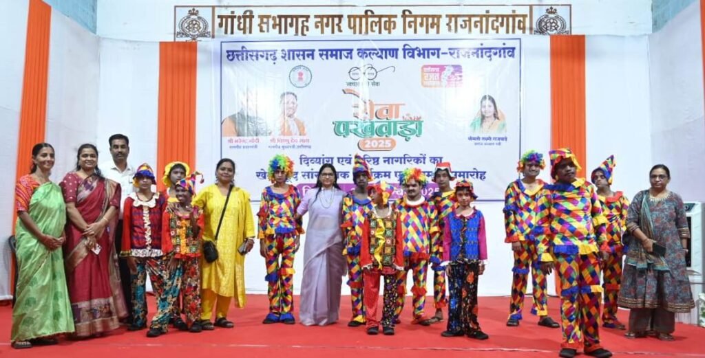 राजनांदगांव 29 सितम्बर 2025। सेवा पखवाड़ा अंतर्गत समाज कल्याण विभाग द्वारा गांधी सभागृह राजनांदगांव में दिव्यांगजनों के लिए सांस्कृतिक कार्यक्रम पुरस्कार वितरण, सहायक उपकरण वितरण एवं सम्मान समारोह का आयोजन किया गया। कार्यक्रम में जिला पंचायत अध्यक्ष श्रीमती किरण वैष्णव, जिला पंचायत सदस्य श्रीमती जागृति साहू, श्रीमती देवकुमारी साहू व श्रीमती किरण बारले, पूर्व जनपद सदस्य श्रीमती मीना पुरेरी, मुख्य कार्यपालन अधिकारी जिला पंचायत सुश्री सुरूचि सिंह, नगर निगम पार्षद व चेयरमेन स्वास्थ्य विभाग श्री शैंकी बग्गा, नियामत हुद्दा एवं अन्य जनप्रतिनिधि उपस्थित थे। जिला पंचायत अध्यक्ष श्रीमती किरण वैष्णव शासन द्वारा दिव्यांगजनों के लिए चलाए जा रहे विभिन्न कार्यक्रमों एवं योजनाओं की जानकारी दी। उन्होंने कहा कि दिव्यांगजनों के लिए इस तरह के कार्यक्रम एवं शिविरों का आयोजन होते रहना चाहिए।