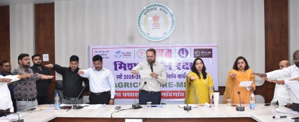 राजनांदगांव 08 सितम्बर 2025। कलेक्टर डॉ. सर्वेश्वर नरेन्द्र भुरे की अध्यक्षता में मिशन जल रक्षा अंतर्गत जिला पंचायत के सभाकक्ष में आज फसल विविधीकरण के संबंध में जिला स्तरीय एग्रीमीट कार्यशाला का आयोजन किया गया। फसल विविधीकरण कार्यशाला में कृषि विभाग, उद्यानिकी विभाग, जल संसाधन विभाग, उद्योग विभाग, बीज निगम, ग्राम पंचायतों सरपंच, औद्योगिक संस्थाओं के प्रतिनिधि, किसान उत्पादक संगठन, प्रगतिशील एवं समृद्ध किसान शामिल हुए।