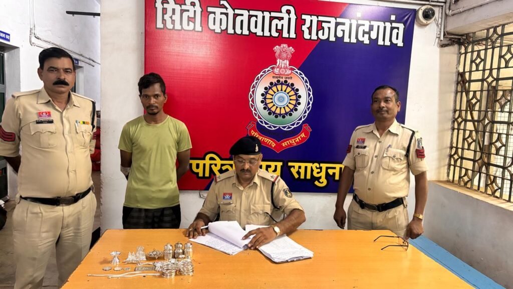 राजनांदगांव। थाना सिटी कोतवाली पुलिस ने नकबजनी की वारदात का खुलासा करते हुए महज 24 घंटे के भीतर एक आरोपी को गिरफ्तार कर न्यायिक रिमांड पर जेल भेज दिया। आरोपी के कब्जे से चोरी गए चांदी के जेवरात, जिनकी कीमत करीब 65 हजार रुपये है, बरामद किए गए हैं।