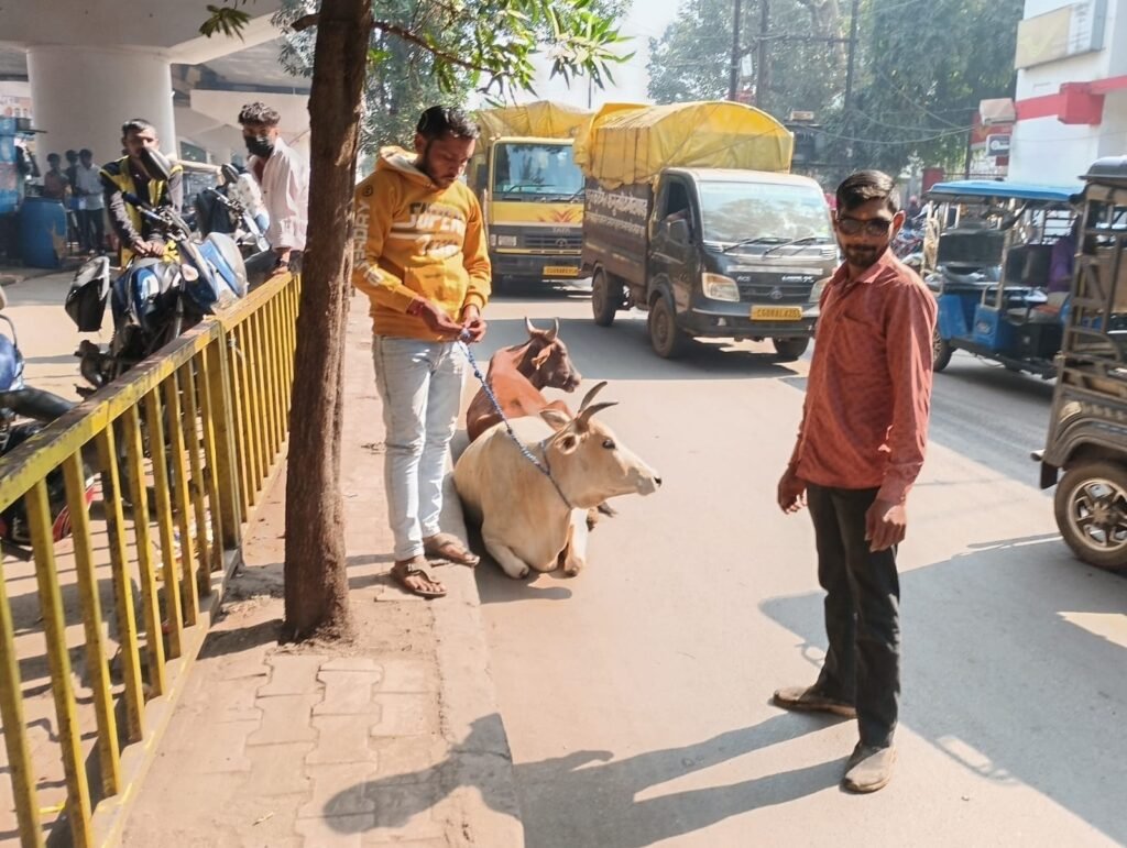 नगर निगम आयुक्त श्री अतुल विश्वकर्मा ने घुमन्तु मवेशियांे को पकड़ने टीम गठित की है, गठित टीम चौक चौराहो से घुमन्तु मवेशियों को पकड़ने की कार्यवाही कर रही है। आज की कार्यवाही में महावीर चौक, नंदई कुॅआ चौक, महेश नगर समदा हास्पिटल के सामने,लखोली चौक, आदि क्षेत्र से घुमन्तु मवेशियों की धर-पकड के तहत 8 घुमन्तु एवं बैठे मवेशियों को पकड़ा गया। मवेशियों को पकड़कर कांजी हाउस में रखा जाता है एवं उन्हंे छोडने पर 570-570 रूपये संबंधित से अर्थदण्ड लेकर मवेशी छोडा जाता है। इसके अलावा निदान 1100 में हुऐ शिकायत तथा अन्य शिकायतो के आधार पर भी मवेशी पकड़ा जाता है।