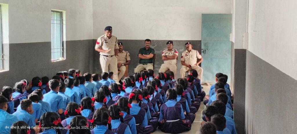 इसी क्रम में चिखली पुलिस चौकी एवं महिला रक्षा टीम द्वारा मंगलवार को राजनांदगांव स्थित पूर्व माध्यमिक शाला बाबूटोला नवागांव स्कूल में विद्यालयी छात्र-छात्राओं को सामाजिक कुरीतियों और अपराधों के विरुद्ध सचेत रहने और जागरूकता फैलाने का संदेश दिया गया।
