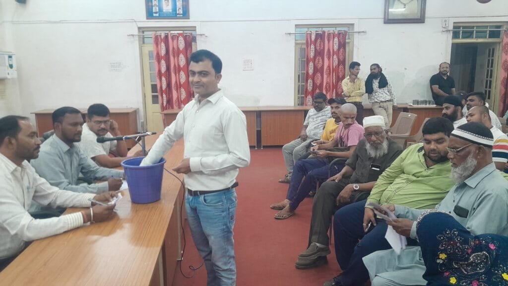 नगर निगम उपायुक्त श्री मोबिन अली की उपस्थिति में फटाका दुकान के लिए इच्छुक लायसेंसी फटाका व्यवसायियांे को लाटरी के माध्यम से अस्थाई भूखण्ड का आबंटन किया गया।