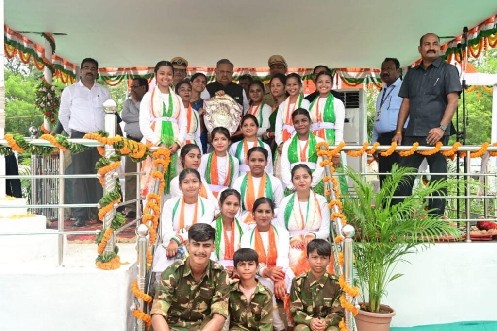 स्वतंत्रता दिवस के अवसर पर शौर्य परेड मैदान पुलिस प्रशिक्षण विद्यालय राजनांदगांव में आयोजित जिला स्तरीय मुख्य समारोह में स्कूल के बच्चों द्वारा आरंभ है प्रचंड है… देश भक्ति गीत पर लगन एवं समर्पण के साथ समूह नृत्य प्रस्तुत किया और प्रथम पुरस्कार प्राप्त कर स्कूल को गौरवान्वित किया।