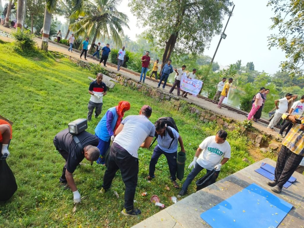 मार्निंग वॉक एवं योगा क्लब के सदस्य उद्यान में साफ सफाई कर किये प्लास्टिक प्लागिंग