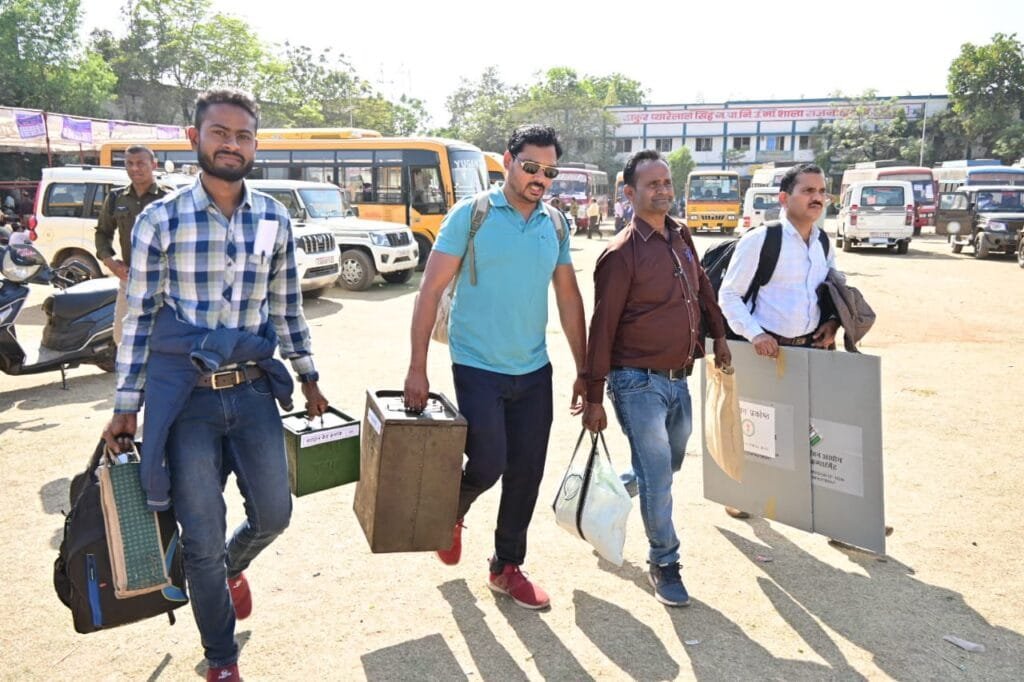 राजनांदगांव 16 फरवरी 2025। त्रिस्तरीय पंचायत निर्वाचन 2025 अंतर्गत प्रथम चरण में मतदान सुचारू संपन्न कराने के लिए आज ठाकुर प्यारे लाल सिंह नगर पालिक निगम उच्चतर माध्यमिक विद्यालय राजनांदगांव से मतदान सामग्री के साथ मतदान दल मतदान केन्द्रों के लिए रवाना किया गया। ऊर्जा एवं उत्साह के साथ मतदान दल वाहन के माध्यम से अपने निर्धारित मतदान केन्द्र के लिए रवाना हो गए। त्रिस्तरीय पंचायत निर्वाचन 2025 अंतर्गत प्रथम चरण में 17 फरवरी 2025 को सुबह 7 बजे से अपरान्ह 3 बजे तक जनपद पंचायत राजनांदगांव के मतदान केन्द्रों में मतदान संपन्न होगा। कलेक्टर एवं जिला निर्वाचन अधिकारी श्री संजय अग्रवाल के मार्गदर्शन में मतदान दलों को मतदान कार्य के लिए विशेष प्रशिक्षण दिया गया है।