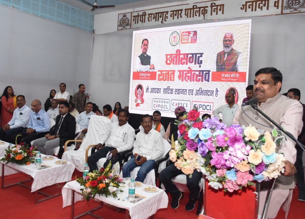 स्कूल शिक्षा मंत्री श्री गजेन्द्र यादव ने कहा कि छत्तीसगढ़ राज्य की स्थापना के 25 वर्ष पूरे हुए हैं। उन्होंने कहा कि छत्तीसगढ़ राज्य बनने के पश्चात यहां तेजी से विकास हुआ है। ऊर्जा के क्षेत्र में प्रदेश में सर्वाधिक विकास हुआ है। उन्होंने बताया कि अविभाजित छत्तीसगढ़ में लगभग 56 हजार उपभोक्ता प्रदेश में थे। वर्तमान में 8 लाख से अधिक किसान उपभोक्ताओं के पास कृषि पंप है। छत्तीसगढ़ बनने के बाद लोगों के जीवन में विकास हुआ है। छत्तीसगढ़ विद्युत वितरण कंपनी द्वारा गांव-गांव में 8 लाख से अधिक कृषि पंपों की स्थापना की गई है। प्रदेश में अलग-अलग प्रकार के सबमर्सिबल की स्थापना की गई है। उन्होंने कहा कि सर्वाधिक मजरा-टोलो में विद्युत पहुंचाने का कार्य किया गया है। उन्होंने कहा कि छत्तीसगढ़ सरकार लगातार ऊर्जा के क्षेत्र के साथ नागरिकों के जीवन को रोशन कर रही है। छत्तीसगढ़ में कृषि बहुत आगे बढ़ा है। बिजली की पर्याप्त उपलब्धता के कारण उद्योग भी बढ़े है। इसके साथ ही छत्तीसगढ़ का चहुमुंखी विकास हुआ है।