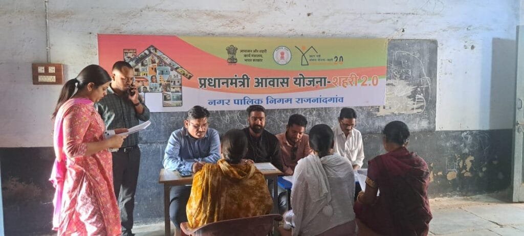 राजनांदगांव 18 नवम्बर। शहरी क्षेत्र में प्रधानमंत्री आवास योजना 2.0 द्वितीय चरण के क्रियान्वन के लिये वार्डो में आज शिविर आयोजित किया गया, शिविर में वार्ड के संभावित पात्र हितग्राहियों का सर्वेक्षण (रैपिड एसेसमेंट सर्वे) किया जा रहा है। वार्डो में आयोजित शिविर में प्रधानमंत्री आवास योजना का लाभ लेने लोगों ने पहुॅच ऑनलाईन आवेदन एवं दस्तावेज के संबंध में जानकारी ली। दिनांक 21 व 27 नवम्बर को भी वार्डो में शिविर आयोजित किये जायेगे।