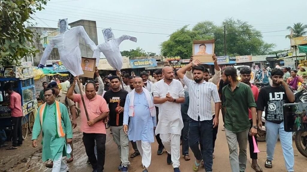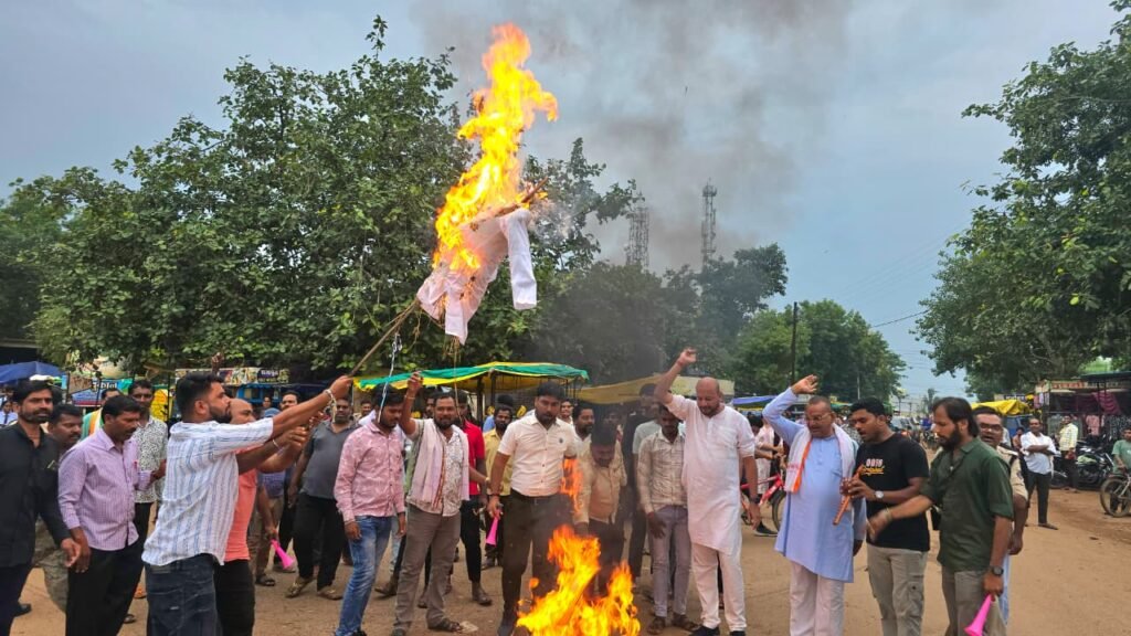 राजनांदगांव – राजनांदगांव विधानसभा के सुकुलदैहान में युवा कांग्रेस ने बिजली दर वृद्धि के खिलाफ प्रदर्शन किया और मुख्यमंत्री विष्णु देव साय और विधायक रमन सिंह का पुतला जलाया।