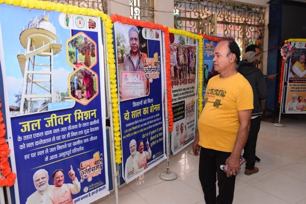 इसी तरह किसानों को धान खरीदी केन्द्र में ही माईक्रो एटीएम के माध्यम से राशि निकालने की सुविधाएं उपलब्ध कराई गई है। गरीबों के लिए सम्मान बढ़ाते हुए उन्हें प्रधानमंत्री आवास से लाभान्वित किया जा रहा है। पक्का आवास बनने से गरीबों के सपने साकार हो रहे हैं। जल जीवन मिशन के तहत घर-घर नल कनेक्शन से महिलाओं को सुविधा मिली है। डोंगरगांव विकासखंड के ग्राम मोखली निवासी श्री राम स्वरूप ने कहा कि केन्द्र एवं राज्य शासन की योजनाएं नागरिकों के लिए बहुत उपयोगी साबित हो रही है। उन्होंने कहा कि शासन-प्रशासन द्वारा किए गए विकास कार्यों को फोटो प्रदर्शनी के माध्यम से बहुत अच्छे से प्रदर्शित किया गया है। उन्होंने कहा कि यहां से प्राप्त नि:शुल्क पुस्तकें प्रतियोगी परीक्षा के दृष्टिकोण से बहुत उपयोगी है। जिसमें शासन की योजनाओं का अच्छा संकलन है।