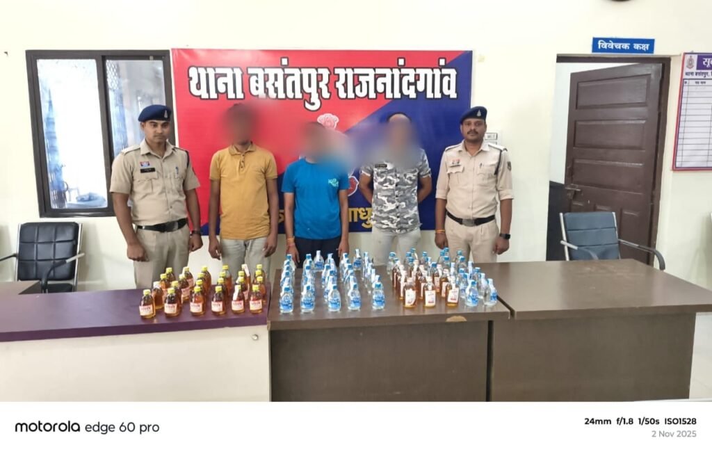 राजनांदगांव। जिले में अवैध शराब बिक्री पर नकेल कसते हुए थाना बसंतपुर पुलिस ने तीन शराब कोचियों को गिरफ्तार कर बड़ी कार्रवाई की है। आरोपियों के कब्जे से 81 पौवा देशी प्लेन शराब, 11 पौवा अंग्रेजी गोवा शराब, कुल 92 पौवा अवैध मदिरा, बिक्री रकम ₹250 और एक बिना नंबर की मोटरसाइकिल जुपिटर जब्त की गई है।