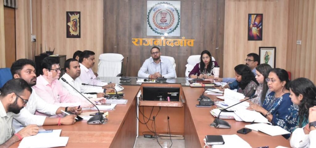 उन्होंने स्वामित्व योजना अंतर्गत अधिकार अभिलेख की स्थिति, पीएम सूर्यघर मुफ्त बिजली योजना, आयुष्मान वय वंदन कार्ड, जल जीवन मिशन, खाद-बीज की स्थिति सहित शासन की विभिन्न योजनाओं की समीक्षा की। इस अवसर पर मुख्य कार्यपालन अधिकारी जिला पंचायत सुश्री सुरूचि सिंह, अपर कलेक्टर श्री सीएल मारकण्डेय, अपर कलेक्टर श्री प्रेम प्रकाश शर्मा, नगर निगम आयुक्त श्री अतुल विश्वकर्मा, एसडीएम राजनांदगांव श्री खेमलाल वर्मा, एसडीएम डोंगरगांव श्री श्रीकांत कोराम, एसडीएम डोंगरगढ़ श्री अभिषेक तिवारी सहित अन्य अधिकारी उपस्थित थे।