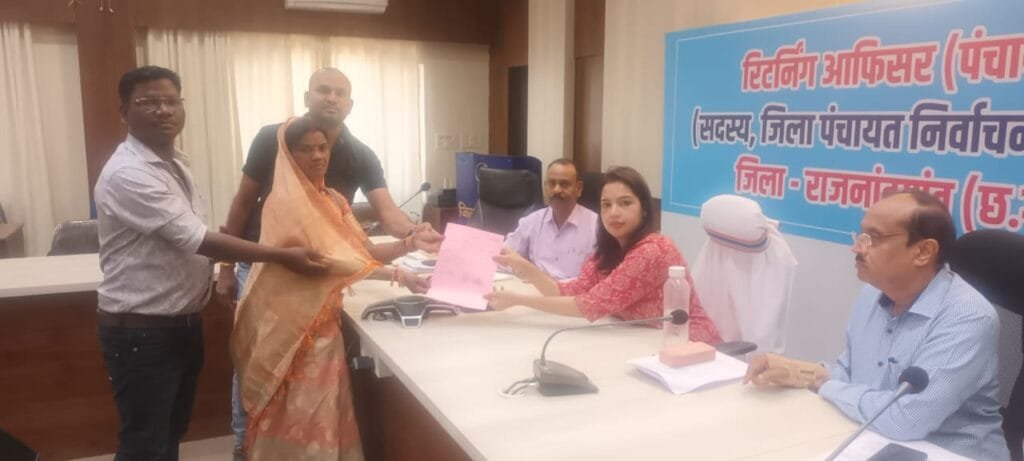 राजनांदगांव :- जिला पंचायत क्षेत्र क्रमांक 11 बंम्हनी चारभाठा से भाजपा की अधिकृत प्रत्याशी बिरम रामकुमार मंडावी जिला पंचायत सदस्य निर्वाचित हुई है। जिला पंचायत राजनांदगांव कार्यालय में जिला पंचायत सीईओ द्वारा बिरम रामकुमार मंडावी को प्रमाण पत्र सौंपा गया व उन्हें बधाई दी।