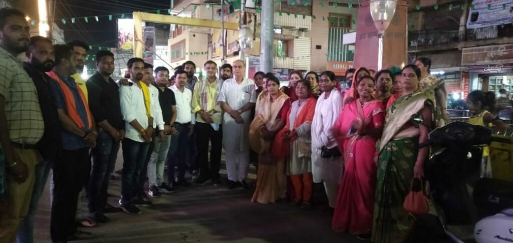 राजनांदगांव- प्रदेश भाजपा के निर्देश पर राजनांदगांव जिला भाजपा महिला मोर्चा और युवा मोर्चा के द्वारा पत्थलगांव में दुर्गामाता प्रतिमा विसर्जन करने जा रहे शोभायात्रा में गांजा तस्करों के बेकाबू कार ने गौरव अग्रवाल को कुचल दिया जिससे उनकी मृत्य हो गई । मृतक के आत्मा की शांति के लिये भाजपा महिला मोर्चा और युवा मोर्चा द्वारा राजनांदगांव के जयस्तंभ चौक में मोमबत्ती जलाकर श्रद्धांजलि दिया गया ।