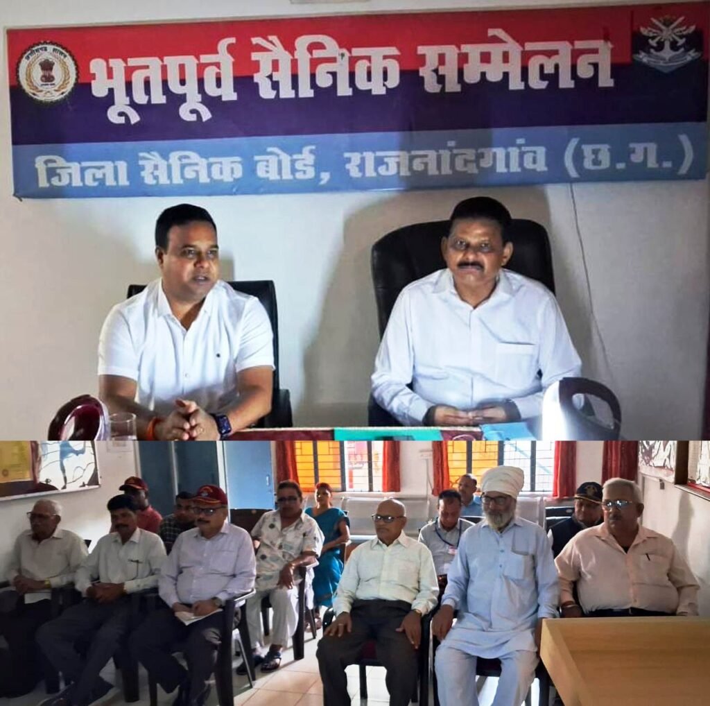 राजनांदगांव 09 अक्टूबर 2025। जिला सैनिक कल्याण कार्यालय राजनांदगांव के परिसर में भूतपूर्व सैनिकों का सम्मेलन आयोजित किया गया। इस अवसर पर अपर कलेक्टर श्री प्रेम प्रकाश शर्मा, जिला सैनिक कल्याण अधिकारी ग्रुप कैप्टन श्री ब्रिजेश कुमार शर्मा (सेवानिवृत्त) उपस्थित थे। अपर कलेक्टर श्री प्रेम प्रकाश शर्मा ने पूर्व सैनिकों को किसी भी प्रकार की समस्या के निवारण के लिए संपर्क करने कहा।