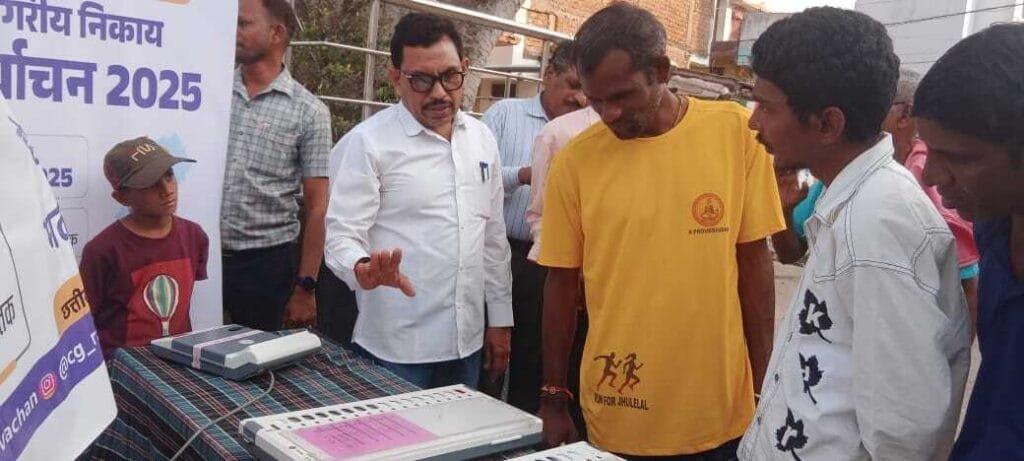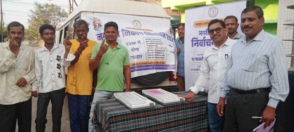 ईव्हीएम प्रदर्शन के लिए नगरीय निकाय के वार्डों में नोडल अधिकारी नियुक्ति किया गया है तथा मास्टर ट्रेनर्स की ड्यूटी लगाई गई है, जिनके द्वारा आम नागरिकों को ईव्हीएम संचालन का प्रदर्शन एवं मतदान प्रक्रिया के संबंध में विस्तृत जानकारी दी जा रही। साथ ही मतदाताओं की जिज्ञासाओं का निराकरण भी कर रहे है। वोटिंग मशीन प्रदर्शन एवं जागरूकता अभियान नगरीय निकाय क्षेत्र के सभी वार्डों में किया जा रहा है।