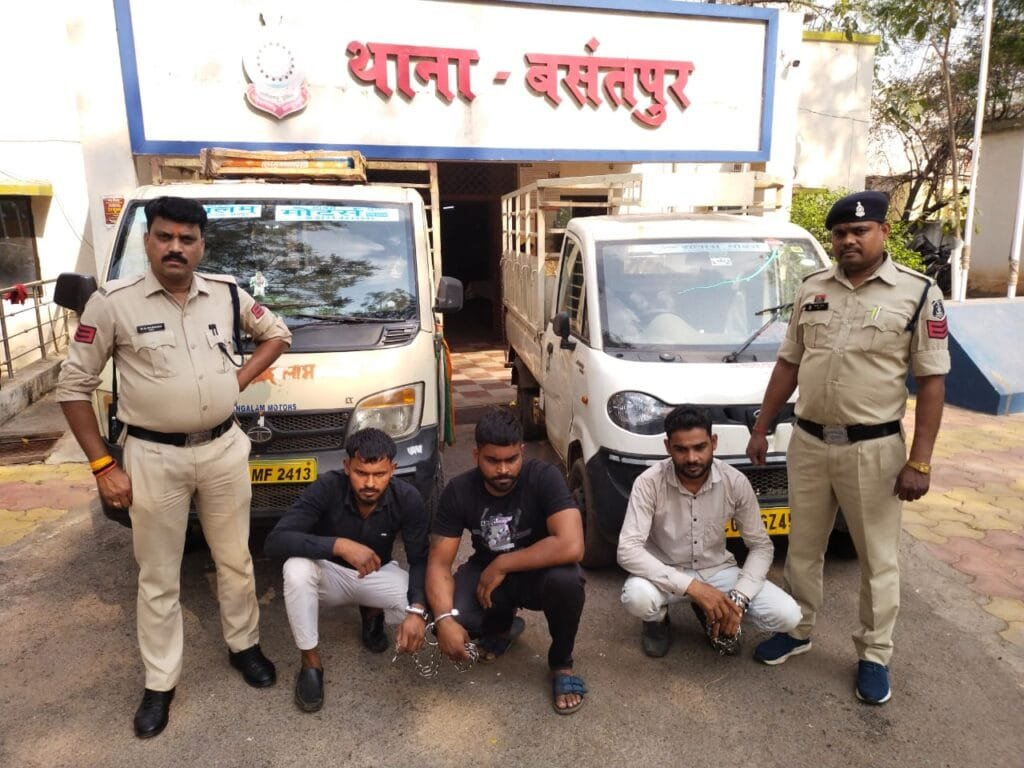 घटना की सूचना वरिष्ठ अधिकारियो को अवगत करा कर श्रीमान पुलिस अधीक्षक मोहित गर्ग (भा0पु0से0) के मार्गदर्शन व श्रीमान अतिरिक्त पुलिस अधीक्षक राहुल देव शर्मा एवं श्रीमान नगर पुलिस अधीक्षक पुष्पेन्द्र नायक दिशा निर्देश पर थाना प्रभारी बसंतपुर एमन साहू के नेतृत्व में आरोपीगणो के पतासाजी हेतु टीम गठित कर आरोपी नरेन्द्र यदु व कुलेश्वर यदु को हिरासत मे लेकर पूछताछ किया गया जो जुर्म करना स्वीकार किये तथा चोरी किये 05 नग भैंस को पिकप वाहन क्रमांक सी0जी0/06/जी0जे0/4506 एवं पिकप वाहन क्रमांक सी0जी0/04/एम0 एफ/2413 में भरकर डोंगरगढ मंगेश पटेल पिता नंद किशोर पटेल निवासी डोगरगढ के पास बिक्री करना बताया।