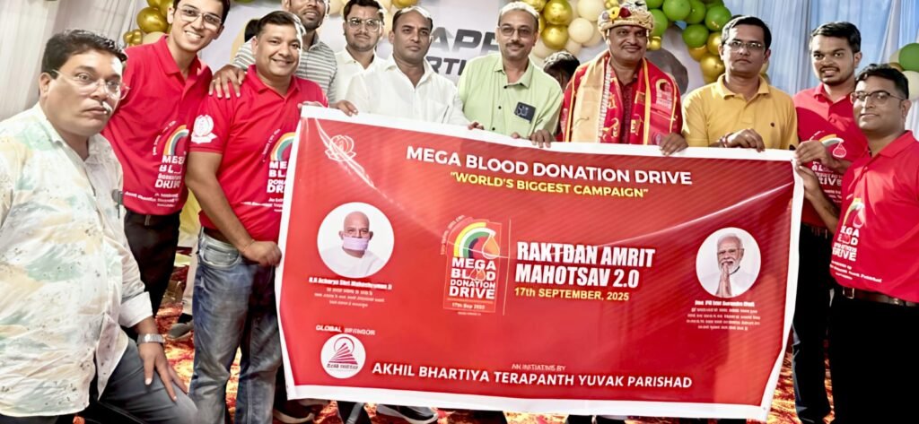 राजनांदगांव। अखिल भारतीय तेरापंथ युवक परिषद द्वारा संचालित “रक्तदान अमृत महोत्सव 2.0” के अंतर्गत आयोजित मेगा ब्लड डोनेशन ड्राइव का पोस्टर और बैनर विमोचन मंगलवार को एक गरिमामय समारोह में सम्पन्न हुआ। यह विमोचन पूर्व सांसद एवं वर्तमान महापौर मधुसूदन यादव के करकमलों से हुआ।
