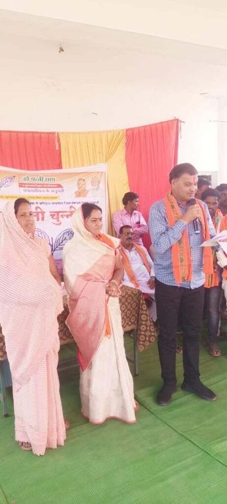 पूर्व सांसद के साथ राजनांदगॉव के भाजपा नेतागण भरत वर्मा, सावन वर्मा भी डोंगरगॉव के ग्राम आसरा, सागिनकछार, तिलईरवार एवं खम्हेरा में ग्रामीण क्षेत्रों में चुनावी प्रचार प्रसार में व्यस्त रहे, जहॉ भजपा के वरिष्ठ नेताओं द्वारा क्षेत्र क्रमंाक 6 से जिला पंचायत सदस्य हेतु भाजपा के अधिकृत प्रत्याशी जागृति चुन्नी यदु (चुनाव चिन्ह – दो पत्ती), क्षेत्र क्रमांक 19 से भाजपा के अधिृकत जनपद सदस्य प्रत्याशी शिवरात्रि मेघनाथ चंद्रवंशी (चुनाव चिन्ह -बरगद का पेड़) एवं क्षेत्र क्रमांक 20 से भाजपा के अधिृकत जनपद सदस्य प्रत्याशी नर्मदा चन्द्रवंशी के पक्ष में जमकर प्रचार प्रसार किया ।