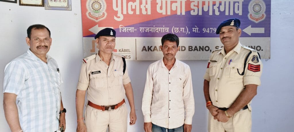 आरोपी दिनेश कुमार यादव पिता पुरनलाल यादव , उम्र- 44 साल, पता- झींका , थाना डोंगरगावं ,जिला राजनांदगांव , छ0ग0 को दिनांक 06.08.24 के 19.45 बजे गिर0 किया। आरोपी का जुर्म अजमानतीय होने से मान0 ज्युडिशियल रिमांड पर पेश किया गया है । उक्त कार्यवाही मे सउनि विजय साहू, प्र0आर0 1052 बद्रीनाथ दिनकर , आर0 गुलशन कंवर , का विशेष भुमिका रहा है ।