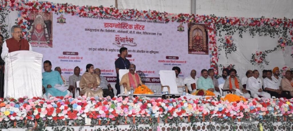 राजनांदगांव 28 जून 2025। विधानसभा अध्यक्ष डॉ. रमन सिंह आज डोंगरगढ़ मां बम्लेश्वरी प्रांगण में 39 करोड़ 23 लाख 11 हजार रूपए की लागत के विभिन्न विकास कार्यों का भूमिपूजन एवं लोकार्पण तथा मां बम्लेश्वरी धर्मार्थ चिकित्सालय में डायग्नोस्टिक सेंटर का शुभारंभ किया। विधानसभा अध्यक्ष डॉ. रमन सिंह ने मां बम्लेश्वरी धर्मार्थ चिकित्सालय में सीटी स्केन, डिजिटल एक्स-रे, सोनोग्राफी कक्ष का अवलोकन किया। इस दौरान उप मुख्यमंत्री श्री अरूण साव, सांसद श्री संतोष पाण्डेय उपस्थित थे।