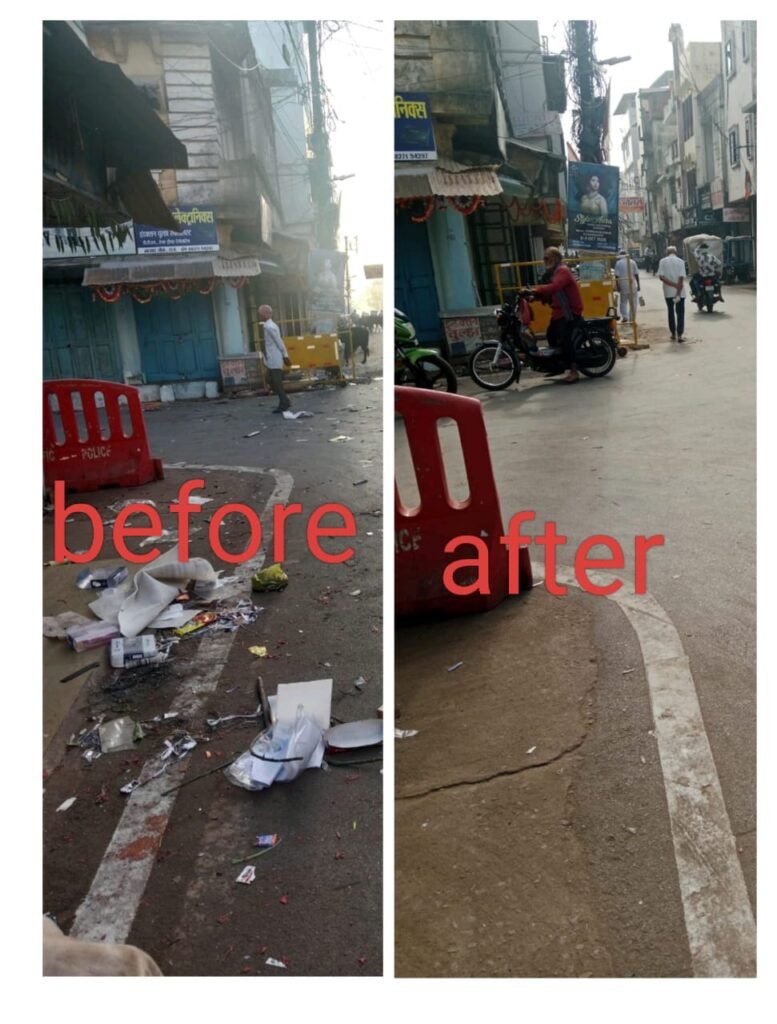 दीपावली पर्व के दौरान शहरभर में की गई खरीदारी और सजावट के कारण सड़कों पर भारी मात्रा में पैकिंग सामग्री, कागज, प्लास्टिक एवं अन्य अवशेष कचरा इकट्ठा हो गया था। निगम के सफाई कर्मचारियों ने तड़के से ही मोर्चा संभालते हुए सभी मुख्य मार्गों और बाजार क्षेत्रों की सफाई कर दी, जिससे शहरवासी सुबह उठते ही साफ-सुथरी सड़कों का नजारा देख प्रसन्न नजर आए।