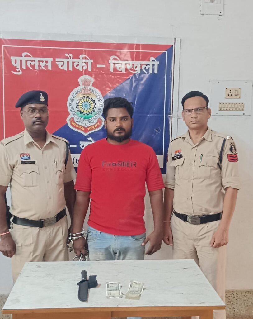 मामले में पुलिस ने धारा 311, 296, 115(2), 351(2), 3(5) बीएनएस एवं 25, 27 आर्म्स एक्ट के तहत अपराध दर्ज कर विवेचना शुरू की। पुलिस अधीक्षक सुश्री अंकिता शर्मा, अतिरिक्त पुलिस अधीक्षक श्री कीर्तन राठौर एवं नगर पुलिस अधीक्षक श्रीमती वैशाली जैन के मार्गदर्शन में चिखली चौकी पुलिस ने त्वरित कार्रवाई करते हुए आरोपी सूरज वाहने (29 वर्ष), निवासी वार्ड नंबर 6 चिखली को दीनदयाल कॉलोनी से गिरफ्तार किया।