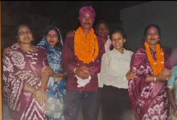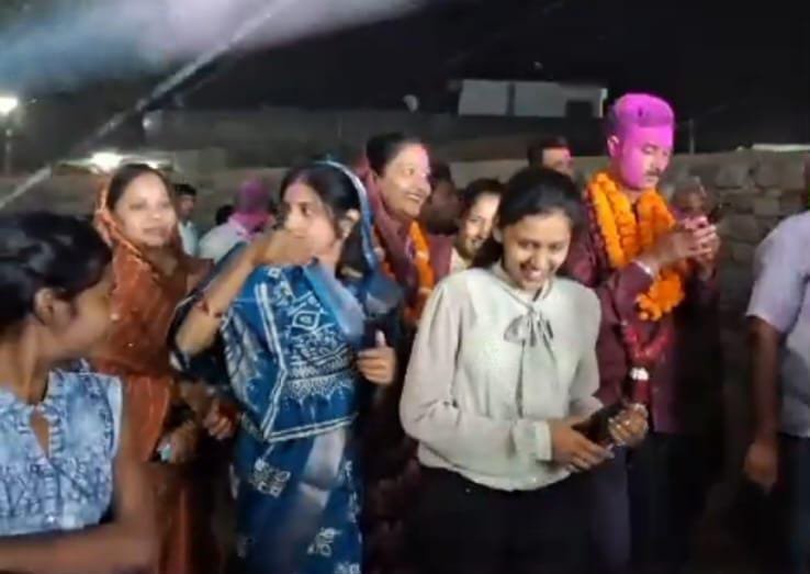 राजनांदगांव । त्रिस्तरीय पंचायत चुनाव में ग्राम पंचायत राजा खुज्जी से सरपंच पद के प्रत्याशी अजय पंसारी (पिंटू)ने प्रचंड बहुमत से जीत हासिल कर दूसरे बार सरपंच बने । सरपंच चुने जाने की खुशी में ग्राम राजा खुज्जी में भव्य विजय जुलूस निकाला गया। ग्रामीणों ने पुष्पमाला से स्वागत किया। वहीं, बाजा की धुन पर नृत्य करते हुए झूम उठे। ग्रामीण एवं कार्यकर्ताओं के साथ जीते प्रत्याशी ने घर-घर जाकर आशीर्वाद प्राप्त किया।