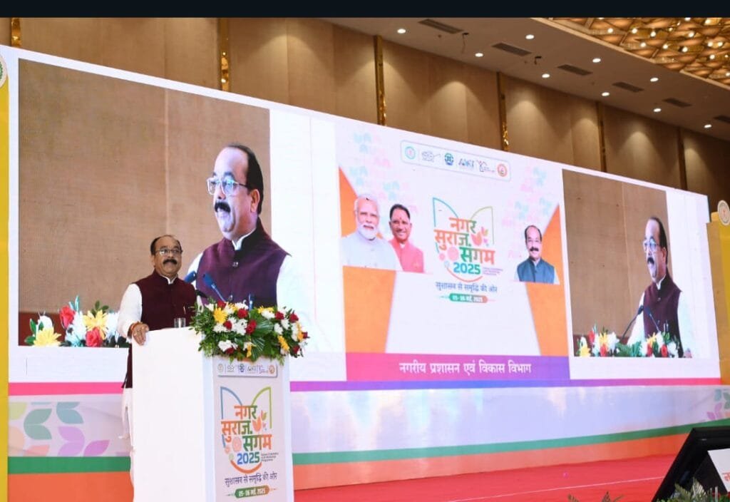 राजनांदगांव 6 मई। छत्तीसगढ़ शासन नगरीय प्रशासन एवं विकास विभाग द्वारा नगरीय निकाय के जन प्रतिनिधियों के लिये रायपुर में दो दिवसीय प्रभोधन कार्यशाला नगर सुराज संगम दिनांक 5 व 6 मई को आयोजित किया गया। कार्यशाला का 5 मई को उप मुख्यमंत्री एवं नगरीय प्रशासन व विकास मंत्री माननीय अरूण साव जी ने विधिवत शुभारंभ किया।