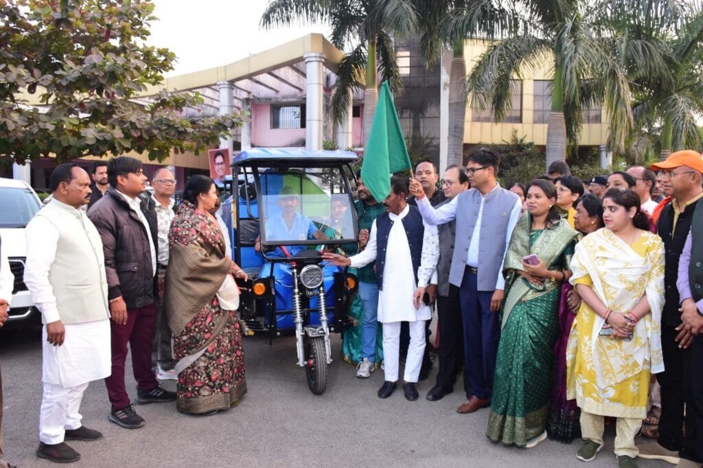 राजनांदगांव 23 दिसम्बर 2024। वित्त, वाणिज्यिक कर, आवास एवं पर्यावरण, योजना एवं आर्थिक सांख्यिकी विभाग मंत्री श्री ओम प्रकाश चौधरी ने राजनांदगांव प्रवास के दौरान पद्मश्री गोविंद राम निर्मलकर आडिटोरियम मेें घर-घर कचरा संग्रहण के लिए 20 ई-रिक्शा को हरी झंडी दिखाकर रवाना किया। इस अवसर पर वित्त मंत्री श्री चौधरी ने 100 नग ट्राईसाइकिल एवं 100 नग व्हील बैरो को सफाई कर्मचारियों को वितरित किया।