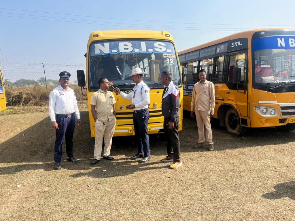 राजनांदगांव। विद्यार्थियों की सुरक्षा सुनिश्चित करने के उद्देश्य से यातायात पुलिस राजनांदगांव द्वारा स्कूली बस चालकों की नियमित जांच अभियान के तहत बुधवार को शराब सेवन की जांच की गई। यह कार्रवाई पुलिस अधीक्षक सुश्री अंकिता शर्मा के निर्देशन एवं अतिरिक्त पुलिस अधीक्षक राहुल देव शर्मा के मार्गदर्शन में की गई।
