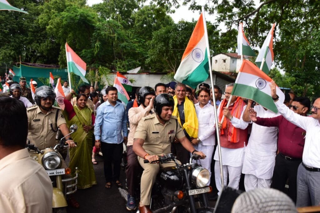 देशभक्ति का जज्बा लिए हाथों में तिरंगा झंडा लेकर उत्साह एवं उल्लास के साथ तिरंगा बाईक रैली शहर के विभिन्न चौक-चौराहों से गुजरी। तिरंगा हमारी आन-बान और शान है। तिरंगा का यह गौरव और सम्मान हर घर तक पहुंचे, इस संदेश के साथ बाईक रैली का यह काफिला तिरंगा रैली पीटीएस मैदान राजनांदगांव से शुरू होकर गुरूद्वारा चौक, मानव मंदिर चौक, गंज चौक, नंदई चौक, महामाया चौक,