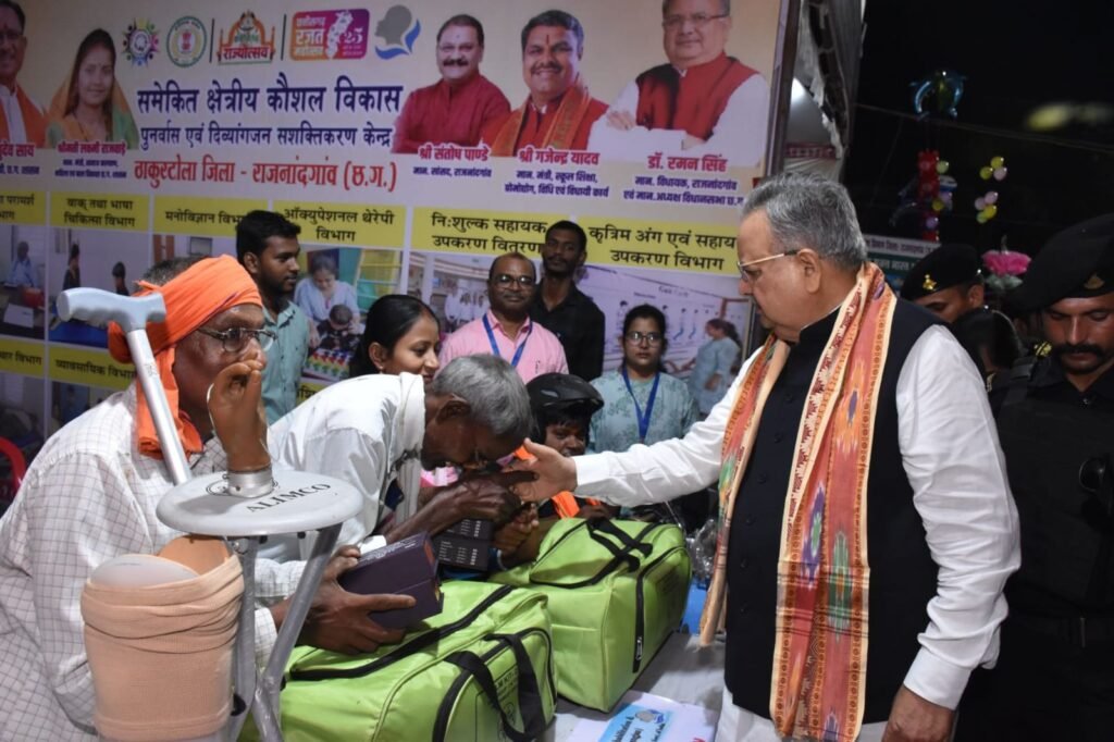 राजनांदगांव 02 नवम्बर 2025। छत्तीसगढ़ राज्य स्थापना के 25 वर्ष पूर्ण होने के अवसर पर सर्वेश्वरदास नगर पालिक निगम उच्चतर माध्यमिक विद्यालय (म्यूनिसिपल स्कूल मैदान) राजनांदगांव में राज्योत्सव 2025 का भव्य आयोजन किया गया। इस अवसर पर विधानसभा अध्यक्ष डॉ. रमन सिंह ने शासन की लोक कल्याणकारी योजनाओं पर आधारित विभागीय स्टॉल एवं प्रदर्शनी का अवलोकन किया। राज्योत्सव के अवसर पर जनसंपर्क विभाग के स्टॉल में शासन की लोकहितकारी योजनाओं की जानकारी देने के साथ ही छत्तीसगढ़ जनमन पत्रिका, छत्तीसगढ़ में सुशासन के लिए नवाचार ब्रोसर, विकसित भारत की ओर बढ़ते कदम, छत्तीसगढ़ रजत महोत्सव पत्रिका का नि:शुल्क वितरण किया गया। जनसंपर्क विभाग की फोटो प्रदर्शनी में शासन तथा जिला प्रशासन द्वारा चलाए जा रहे विभिन्न अभियानों को प्रदर्शित किया गया।