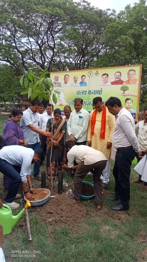 राजनांदगांव 5 जून। नगर निगम द्वारा विश्व पर्यावरण दिवस के अवसर पर आनंद वाटिका में वृक्षारोपण कार्यक्रम आयोजित किया गया। जहॉ महापौर श्री मधुसूदन यादव ने एक पेड़ मॉ के नाम कदम का पौधा लगाकर पर्यावरण की रक्षा के लिए शपथ दिलाए। उन्होंने कहा कि विश्व पर्यावरण दिवस के अवसर पर ही आज पौधा नही लगाना है, बल्कि हर अच्छे दिन पौधे लगाकर उसकी रक्षा करनी है। एक पेड़ मॉ के नाम लगाने का शासन का उद्देश्य हम सबको भावनात्मक रूप से जोडना है।