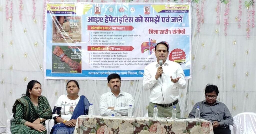 राजनांदगांव 28 जुलाई 2025। कलेक्टर डॉ. सर्वेश्वर नरेन्द्र भुरे के निर्देशानुसार जिले में विश्व हेपेटाइटिस दिवस के अवसर पर हेपेटाइटिस बीमारी के संबंध में जागरूकता कार्यक्रम आयोजित किया गया। जिला स्तरीय संगोष्ठी महाराष्ट्र मंडल बल्देव बाग में आयोजित किया गया। जिसके अंतर्गत शहरी स्वास्थ्य कार्यक्रम के 205 स्वास्थ्य कार्यकर्ताओं एवं मितानिनों का स्क्रीनिंग एवं टीकाकरण किया गया। मुख्य चिकित्सा एवं स्वास्थ्य अधिकारी डॉ. नेतराम नवरत्न ने संगोष्ठी में सभी कार्यकर्ताओं को स्वयं, अपने परिवार एवं समुदाय को सुरक्षित रखने के लिए जागरूक रहने की अपील की।