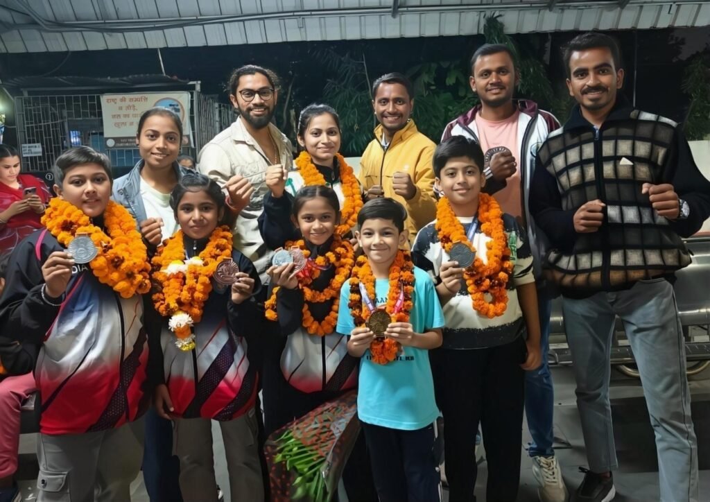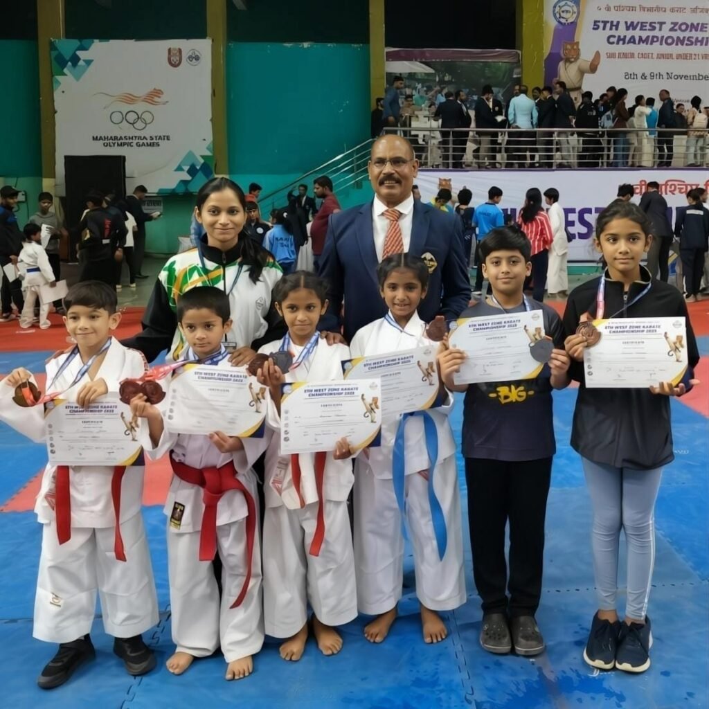 राजनांदगांव 12 नवम्बर ।। वेस्ट जोन कराते चौंपियनशिप 2025, नासिक (महाराष्ट्र) में छत्तीसगढ़ राज्य का प्रतिनिधित्व करने वाली टीम में राजनांदगांव अकादमी ऑफ मार्शल आर्ट्स स्कूल, कस्तूरबा महिला मंडल, राजनांदगांव के 09 खिलाड़ीयों ने 01 स्वर्ण, 03 रजत एवम 05 कांस्य पदक सहित कुल 09 पदक जीतने में सफलता प्राप्त की है। छत्तीसगढ़ के टीम कोच एवं राष्ट्रीय स्तर के करातेे प्रशिक्षक शिहान मुरली सिंह भारद्वाज के नेतृत्व में जिले के खिलाड़ियों ने यह उपलब्धि अर्जित की है।