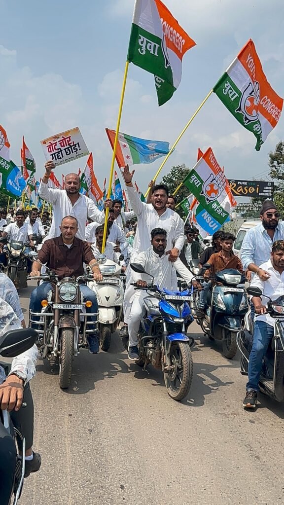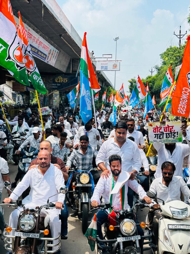राजनांदगांव। युवा कांग्रेस और NSUI ने आज “वोट चोर गद्दी छोड़” कार्यक्रम के तहत जोरदार शक्ति प्रदर्शन किया। इस मौके पर AICC महासचिव सचिन पायलट का कार्यकर्ताओं ने भव्य स्वागत किया। कार्यक्रम के दौरान निकली विशाल बाइक रैली ने शहर का माहौल गर्मा दिया।