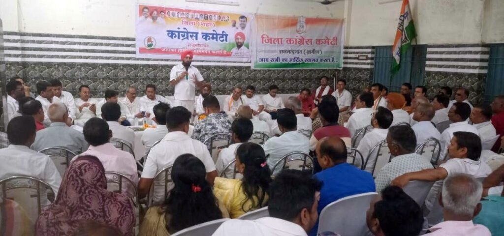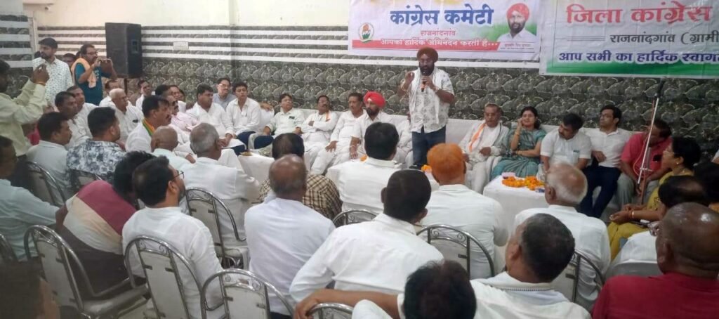 राजनांदगांव। केन्द्र की मोदीनीत भाजपा सरकार की जनविरोधी व लोकतंत्र विरोधी नीतियों के खिलाफ अखिल भारतीय कांग्रेस कमेटी द्वारा पूरे देश में ‘‘वोट चोऱ गद्दी छोड‘‘ जनजागरण अभियान चलाया जा रहा है। राजनांदगांव जिले में आयोजित इस अभियान को सफल बनाने व एआईसीसी महासचिव, व छत्तीसगढ़ प्रभारी सचिन पायलट का आगमन राजनांदगांव जिले में हो रहा जिसको लेकर महत्वपूर्ण बैठक 14 सितंबर रविवार को नंदई सतनाम भवन में शहर जिला कांग्रेस अध्यक्ष कुलबीर सिंह छाबड़ा व ग्रामीण कांग्रेस कमेटी के अध्यक्ष भागवत साहू के नेतृत्व में बैठक आहूत की गई। बैठक का संचालन अमित चंद्रवंशी ने किया।
