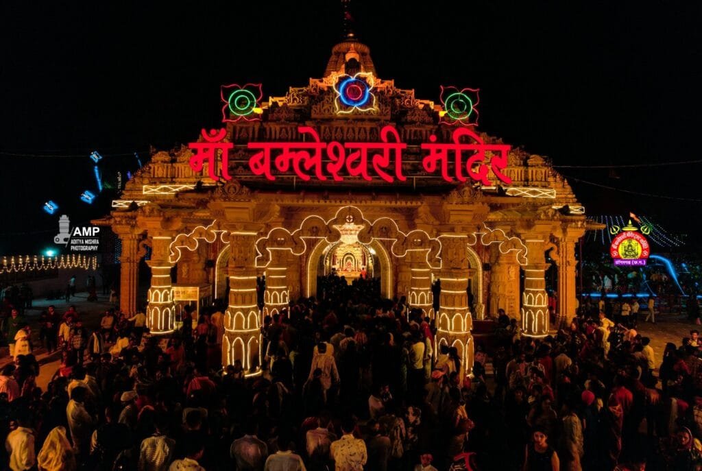 – माँ बम्लेश्वरी देवी का मंदिर 1610 फीट ऊंची पहाड़ी की चोटी पर स्थित