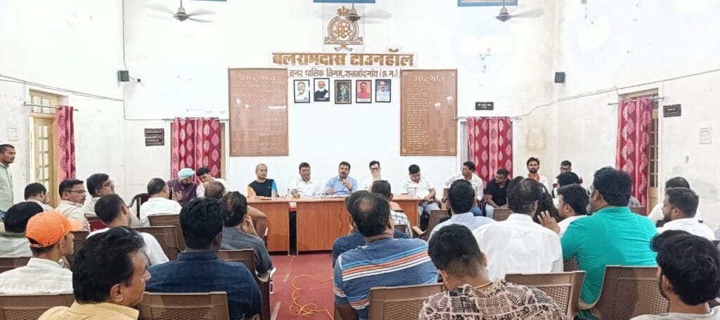 राजनांदगांव 28 जून। शहर को व्यवस्थित करने, यातायात व्यवस्था सुदृढ़ करने एवं सुगम आवागमन के लिए जिलाधीश डाॅ. सर्वेश्वर नरेन्द्र भूरे के निर्देश पर आज नगर निगम सभागृह में प्रशासन एवं व्यापारियों की संयुक्त बैठक आयोजित की गई। बैठक में निगम आयुक्त श्री अतुल विश्वकर्मा, अनुविभागीय अधिकारी श्री खेमलाल वर्मा तथा सिटी थाना प्रभारी श्री रोमेन्द्र सिंह, यातायात विभाग के श्री शरद कुमार सहित चेम्बर आॅफ कामर्स के प्रदेश महामंत्री श्री तरूण लहरवानी व प्रदेश उपाध्यक्ष श्री आलोक बिंदल, चेम्बर आॅफ कार्मस के जिलाध्यक्ष श्री कमलेश बैद के अलावा शहर के व्यापारिक क्षेत्र के पार्षद सर्वश्री शैंकी बग्गा, राजेश जैन रानू, जैनम बैद, प्रमोद झंझाडे, पूर्व पार्षद श्री शरद सिन्हा विशेष रूप से उपस्थित थे।