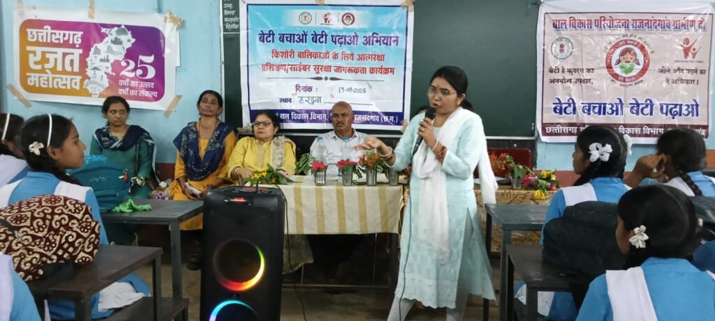 महिला एवं बाल विकास विभाग द्वारा चाइल्ड हेल्प लाइन 1098, महिला हेल्प लाइन 181, स्पॉन्सरशिप योजना, सखी वन स्टॉप सेंटर, स्नेह सर्वोदय बालिका गृह, घरेलू हिंसा अधिनियम 2005, लैंगिक उत्पीडऩ, कार्य स्थल में लैंगिक उत्पीडऩ, सखी वन स्टॉप सेंटर, साइबर बुलिंग, आईटी एक्ट, भारतीय न्याय संहिता 2023, साइबर ग्रुमिंग, सोशल मीडिया में होने वाले समस्या, यौन शोषण, लैंगिक उत्पीडऩ, चाइल्ड पोर्नोग्राफी, फर्जी डिजिटल अरेस्ट, फर्जी कॉल, शेयर मार्केट, ट्रेडिंग, फर्जी वीडियो कॉल, फर्जी आईडी से फ्रेंडशिप फेसबुक या इंस्टा, साइबर स्टाकिंग, एपीके एप्प, वर्क फॉर्म होम, ऑनलाइन जॉब, सोशल मीडिया में प्राइवेट, ऑन लाइन ठगी, साइबर क्राइम का नेशनल हेल्प लाइन नंबर 1930 विषय पर जानकारी दी गई।