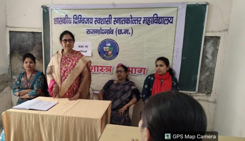 राजनांदगांव। शासकीय दिग्विजय महाविद्यालय, राजनांदगांव में केन्द्रीय बजट 2026–27 पर अर्थशास्त्र विभाग द्वारा एक महत्वपूर्ण परिचर्चा का आयोजन किया गया। कार्यक्रम प्राचार्य डॉ. सुचित्रा गुप्ता के मार्गदर्शन एवं विभागाध्यक्ष डॉ. सुमीता श्रीवास्तव के निर्देशन में संपन्न हुआ। परिचर्चा में विभाग के सभी प्राध्यापक एवं बड़ी संख्या में छात्र-छात्राएं उपस्थित रहे।
