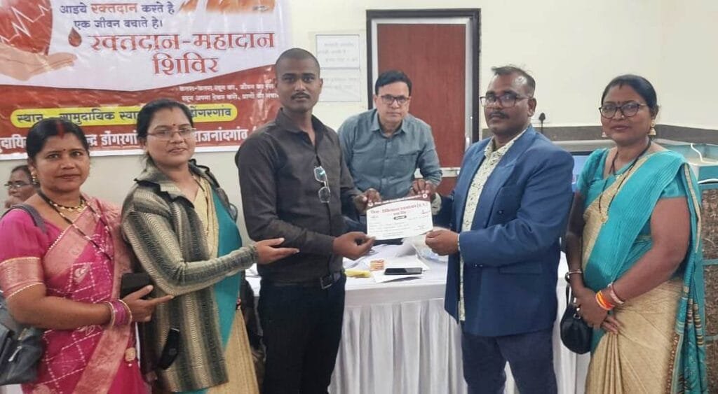 राजनांदगांव 17 दिसम्बर 2024। शासन के एक वर्ष पूर्ण होने पर जनादेश परब के अवसर पर कलेक्टर श्री संजय अग्रवाल के मार्गदर्शन में नवीन सामुदायिक स्वास्थ्य केन्द्र डोंगरगांव में स्वास्थ्य शिविर का आयोजन किया गया। शिविर में 2837 नागरिकों का स्वास्थ्य परीक्षण किया गया और मरीजों का उपचार कर आवश्यकतानुसार नि:शुल्क दवाईयां दी गई। शिविर में 42 नागरिकों ने स्वैच्छिक रक्तदान किया एवं एवं रक्तदाताओं को प्रमाण पत्र वितरण किया गया।