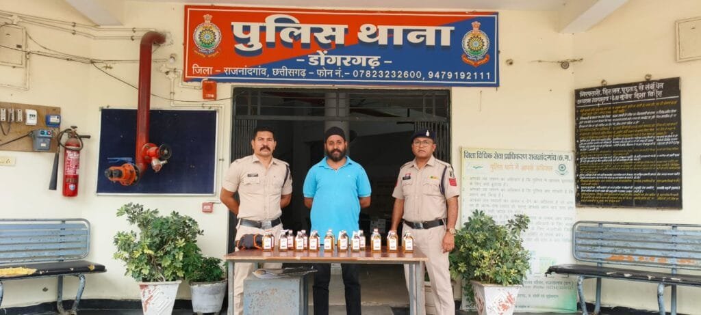 राजनांदगांव । श्रीमान पुलिस अधीक्षक महोदय श्री मोहित गर्ग, अति0पुलिस अधीक्षक महोदय श्री राहुल देव शर्मा एवं एसडीआपी महोदय डोंगरगढ़ श्री आशीष कुंजाम के आदेश पर थाना प्रभारी जितेन्द्र वर्मा के दिशा-निर्देश में डोंगरगढ़ पुलिस द्वारा क्षेत्र में लगातार गस्त पेट्रोलिंग कर अवैध गतिविधियों, शराब कोचियों/तस्करों, सटोरियों, संदिग्ध व्यक्तियों, पॉकेटमार, चाकुबाज एवं अन्य असमाजिक तत्वों पर कड़ी निगरानी रखकर लगातार कार्यवाही की जा रही है इसी कड़ी में दिनांक- 15.05.2025 को डोंगरगढ़ पुलिस को करमजीत सिंग भाटिया नामक व्यक्ति शेरे पंजाब होटल के पींछे अवैध शराब रखकर ब्रिक्री कि सूचना पर डोंगरगढ़ पुलिस मौके पर पंहूचकर रेड कार्यवाही किया जहां पुलिस को आते देख व्यक्ति अपने पास रखे एक काले रंग का थैले को लेकर भागने का प्रयास कर रहा था ।
